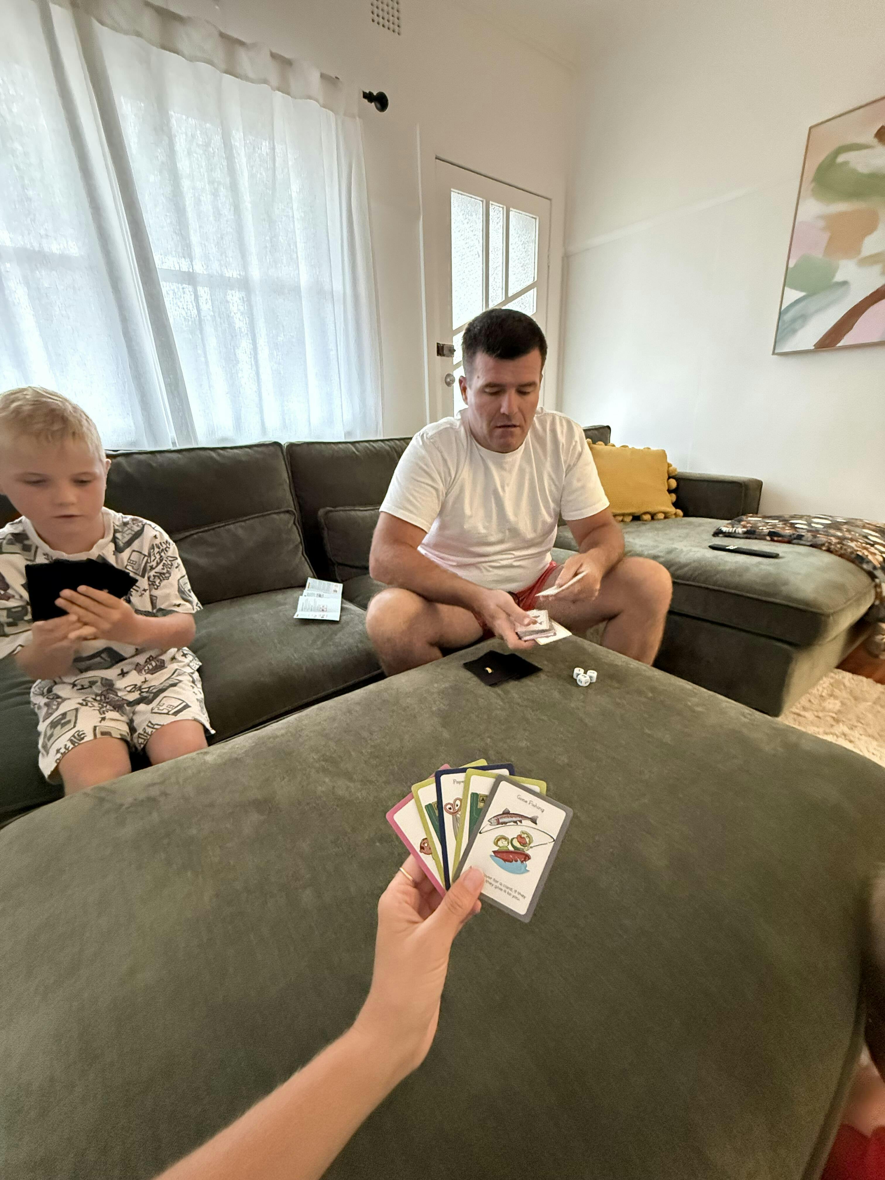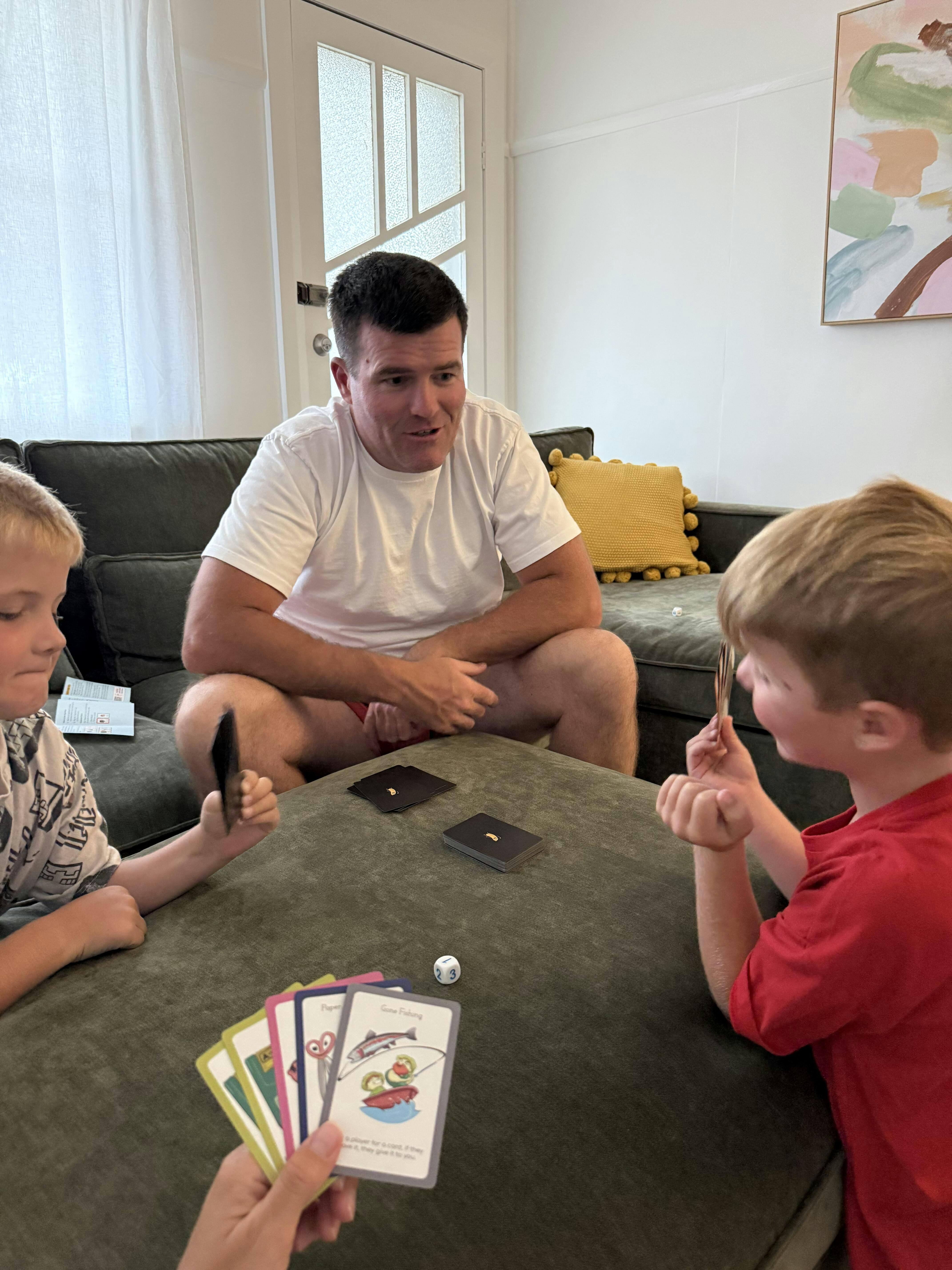 It’s a fast paced, family friendly card game created by an Aussie dad and his kids. Easy for kids to learn, enough strategy for adults, and designed to get everyone laughing and connecting.